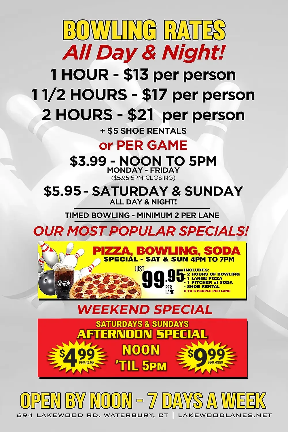 Whether you're planning a birthday party, corporate event, or just looking for a great time with friends and family, Lakewood Lanes is your destination for fun in Waterbury!